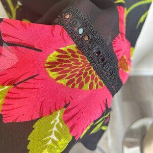 Vtg XOXOXO Black Floral Prom Baby Doll Maxi Dress Fairy Coquette Tiered Sz L Y2K