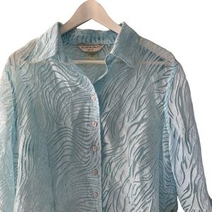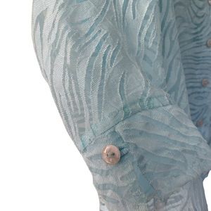 Vtg Y2K Icy Blue Semi Sheer Dainty Shirt Size 12P Button Up Blouse Allison Daley