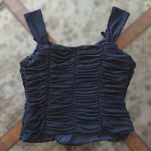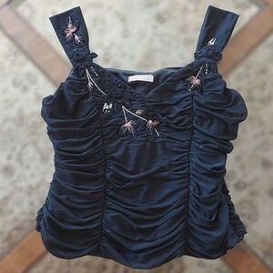 Vtg Y2K Precis Petite black ruched mesh overlay camisole