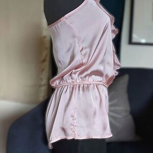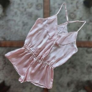 Vtg baby pink faux wrap ruffle trim romper