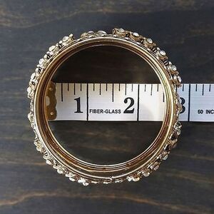 • Sparkly iridescent rhinestones in floral filigree wire settings with milgrain borders, in two rows around centre flanking textured metal X shaped accents