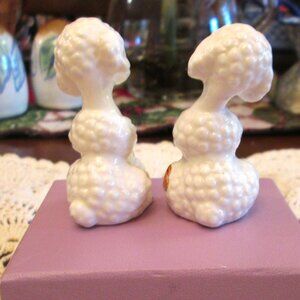 Vtg salt & pepper bone china very white poodle shakers Japan
