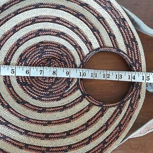 • Wheat tone with faded orange / ochre and black concentric stripes