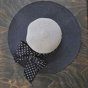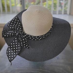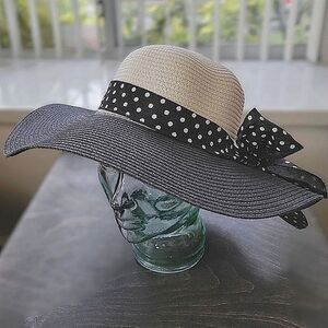 Black and cream floppy straw sunhat