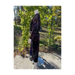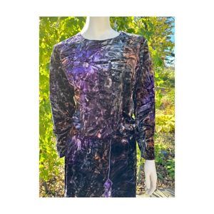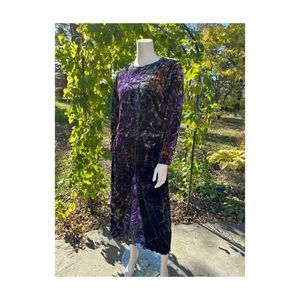 Vintage 90s Linda Lundstrom Witchy Skirt Set Broomstick Crushed Velvet Multicolor Fall Purple Orange Godet Sz 14