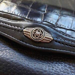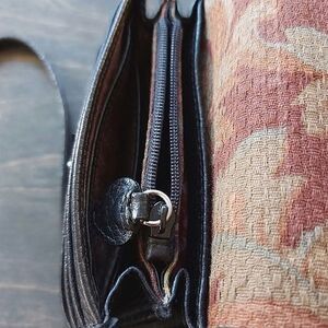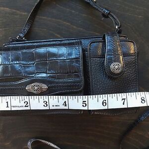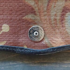 • Front card slot and zippered coin pocket compartment with embellished snap flap, heart shaped leather zipper pull tab