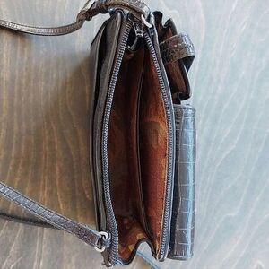 Vtg 90s black pebbled leather multi-pocket crossbody mini bag