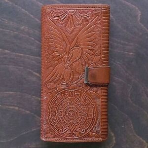 Vtg Mexican hazel tooled leather trifold clutch wallet
