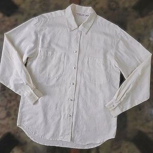 Vtg Talbots ivory floral textured long sleeve button-down shirt
