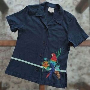 • Large multicolour embroidered scarlet macaw and tropical flora patch
