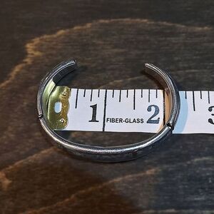 Vtg blue-grey faux stone inlay mixed metal cuff