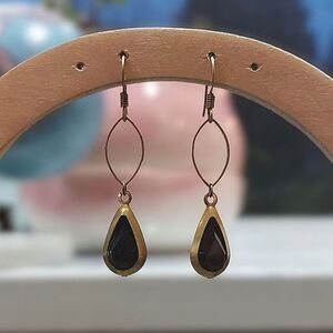 Vtg brass and black faceted acrylic tear drop dangle earrings