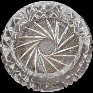 Vtge American Brilliant Cut Heavy Crystal Ashtray Buzz Hobstar Pattern 7" Diam