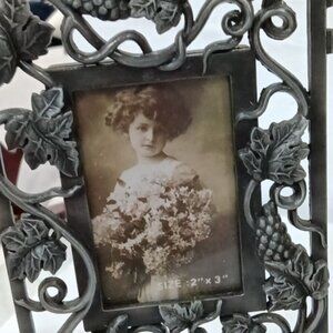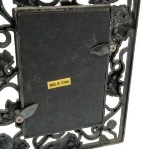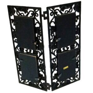 Vtge Metal Bi-Fold Rectangular Four-Picture Photo Frame Black Grape Vine Decor