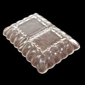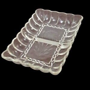 Vtge Rectangular Divided Relish Dish Etched Cornflowers on Bottom Scalloped Rim