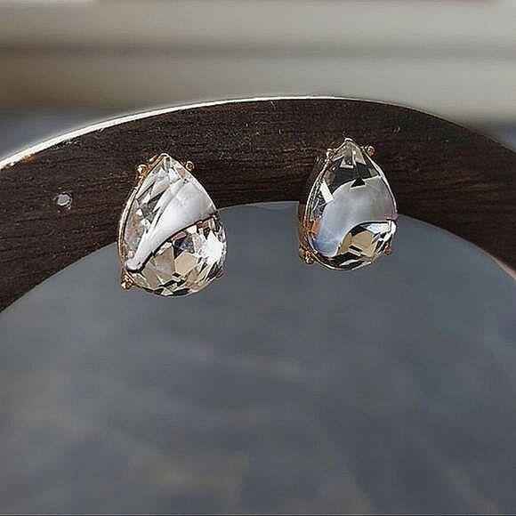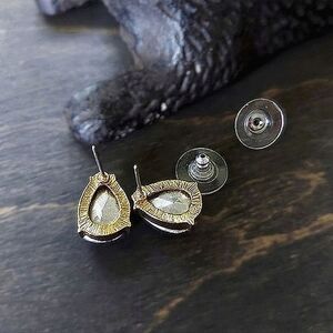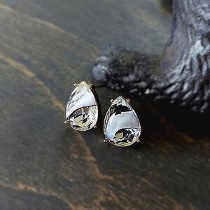 Beautiful, highly reflective faux crystal teardrop studs in gold tone basket settings