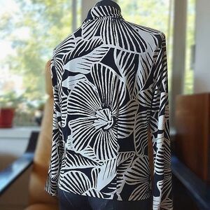 Vtg monochromatic tropical print long sleeve button up blouse