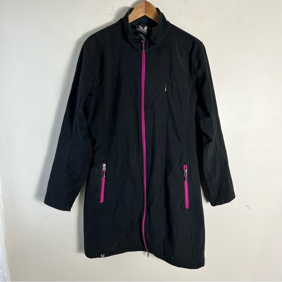 Vuarnet Women's Size 14 Black Pink Long Jacket Coat Fleece Lined Warm Outdoors