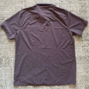 Stylish Vuori button down shirt. Features a subtle pattern. Perfect for casual wear.
