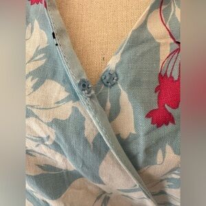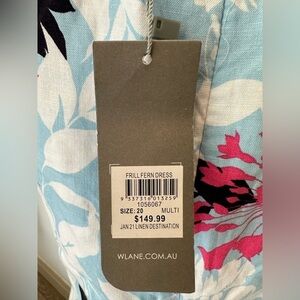 W Lane Frill Fern Dress Blue Pink Floral MIDI Faux Wrap Tie Waist SZ 20 NWT