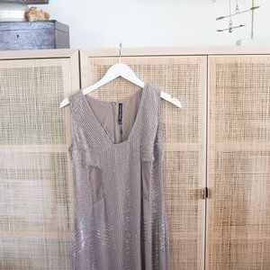 Never worn and new with tags, this sequin dress with cut out panels is gorgeous! Incredibly flattering. Wear with an oversized knit and casual sandals to show off it's beautiful sparkle.