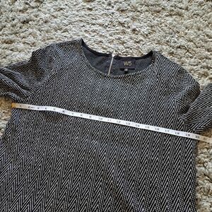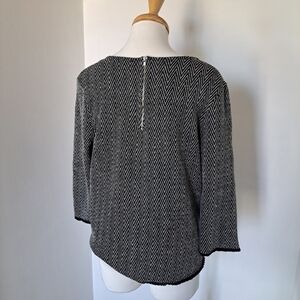 W5 | Back & white triangle striped crew neck cropped sleeve shirt frayed edges. women's size large