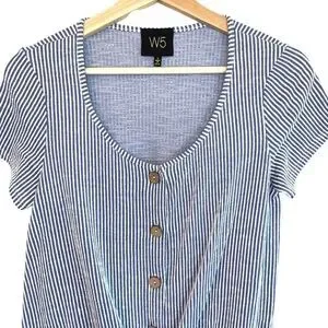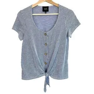 This is a W5 Striped Button and Tie Top