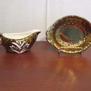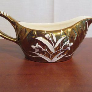 Wade gravy boat with underplate, handpainted, gold lustre with white floral trim.
