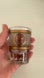 Shot glass is branded Roosevelt Hotel, New Orleans and Waldorf Astoria. It has gold tone decoration including a golden eagle depicted on two sides.
