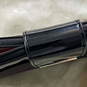 WALLET, GIORGIO ARMANI, BLACK SATIN & PATENT, ZIP CLOSURE AND DOME FLAP, INSIDE