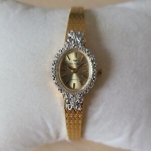 WALTHAM Vintage cocktail gold watch with silver bezel, circa 1960s-70s