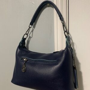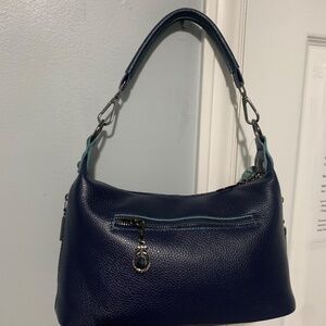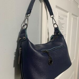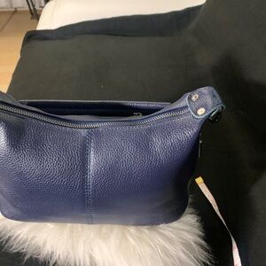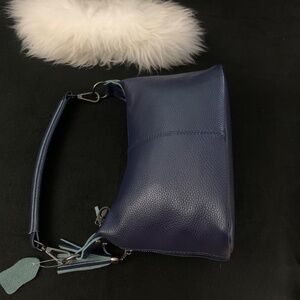 New without tag see photos, soft 100 percent Leather. Dark Blue color. Has crossbody strap.