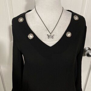 WAREHOUSE ONE Black semi-sheer shirt with silver tone grommets ~ XS SMALL top
