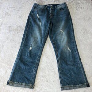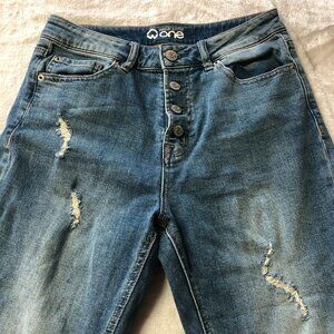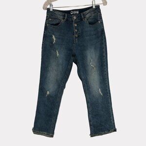 WAREHOUSE One High Waisted Button Fly Distressed Raw Hem Ankle Jeans Size 6
