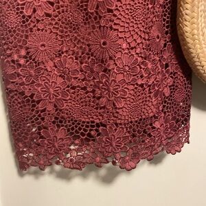 WAYF Anthropologie Brand | Burgundy Floral Lace Mini Dress - halter neckline - S