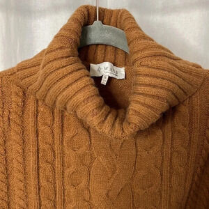 WAYF Camel Crop Cable Knit Turtleneck Sweater Wide Sleeve, Size S