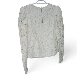 WAYF Ivory Lace Blouse – Puff Shoulders, Sheer Long Sleeves, Back Zip, S…