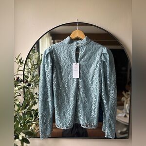 WAYF | NWT Elan lace mock neck lace sleeve blouse | size small