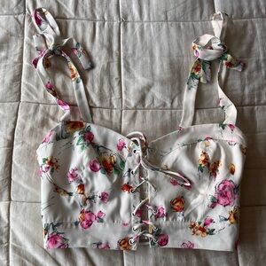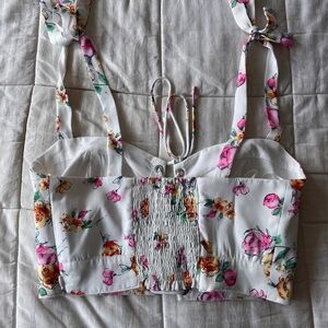 WAYF Seanna Floral Print Crop Top S Ivory Floral