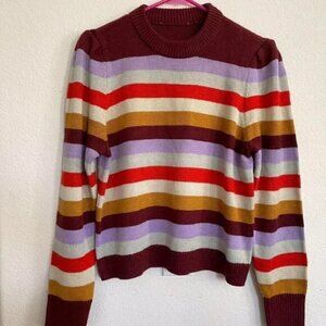 WAYF Striped Puff Sleeve Crew Neck Long Sleeve Sweater