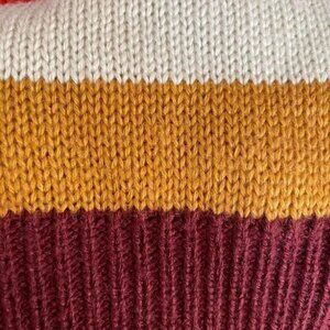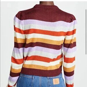 WAYF Striped Puff Sleeve Crew Neck Sweater Plum Lilac Red Orange Light Grey