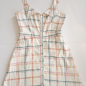 WAYF Summer Plaid Linen-Blend Checkered Button-Down Dress S