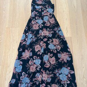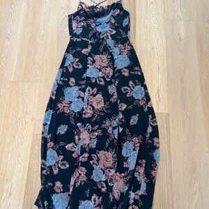 The graceful drape of the neckline adds a serene touch to this side-slit gown and fastened with an alluring, strappy open back