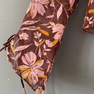 WAYF, Sheer Blouse, Tie Front, Floral, Brown, Pink, Yellow, Whimsigoth, Cottagecore, Dark Cottagecore, Fairycore, Fairy Grunge, Boho, Bohemian, Y2K, 90s, Romantic, Ethereal, Long Sleeve, Flowy, NWT, Fall Fashion, Autumn, Trendy, Peasant Top, Coquette