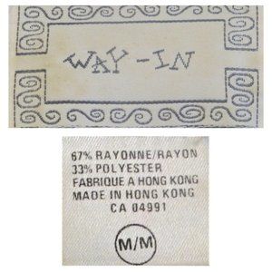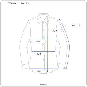 WAY-IN Blue Button Up Blouse in Size Medium is excellent pre-owned condition with no flaws. Measurements in photos - note measurements taken flat and unstretched. Waist, Hip and armpit to armpit (chest) is then doubled.