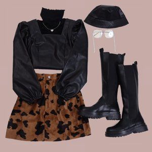 W♥C / Wego Japan brown cow print faux suede mini skirt