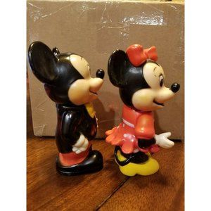 WDP Mickey And Minnie Piggy Banks Hard Plastic PVC Movable Arms Vintage
