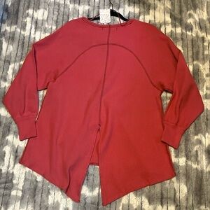 In a soft waffle-knit fabrication, this effortless pull-on thermal top from our We The Free collection is featured in an oversized silhouette with exaggerated back slit detail and uneven hemline for added shape.