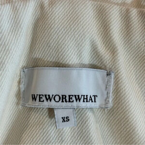 WE WORE WHAT Sz XS Oversized 100% Cotton Adjustable Straps Short Overalls. Tiny stain on back as pictured. Super cute and fresh.
