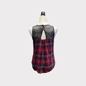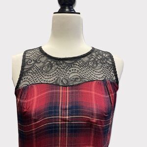 WEARHOUSE ONE | Women's Red and Black Plaid Tank Top with Lace